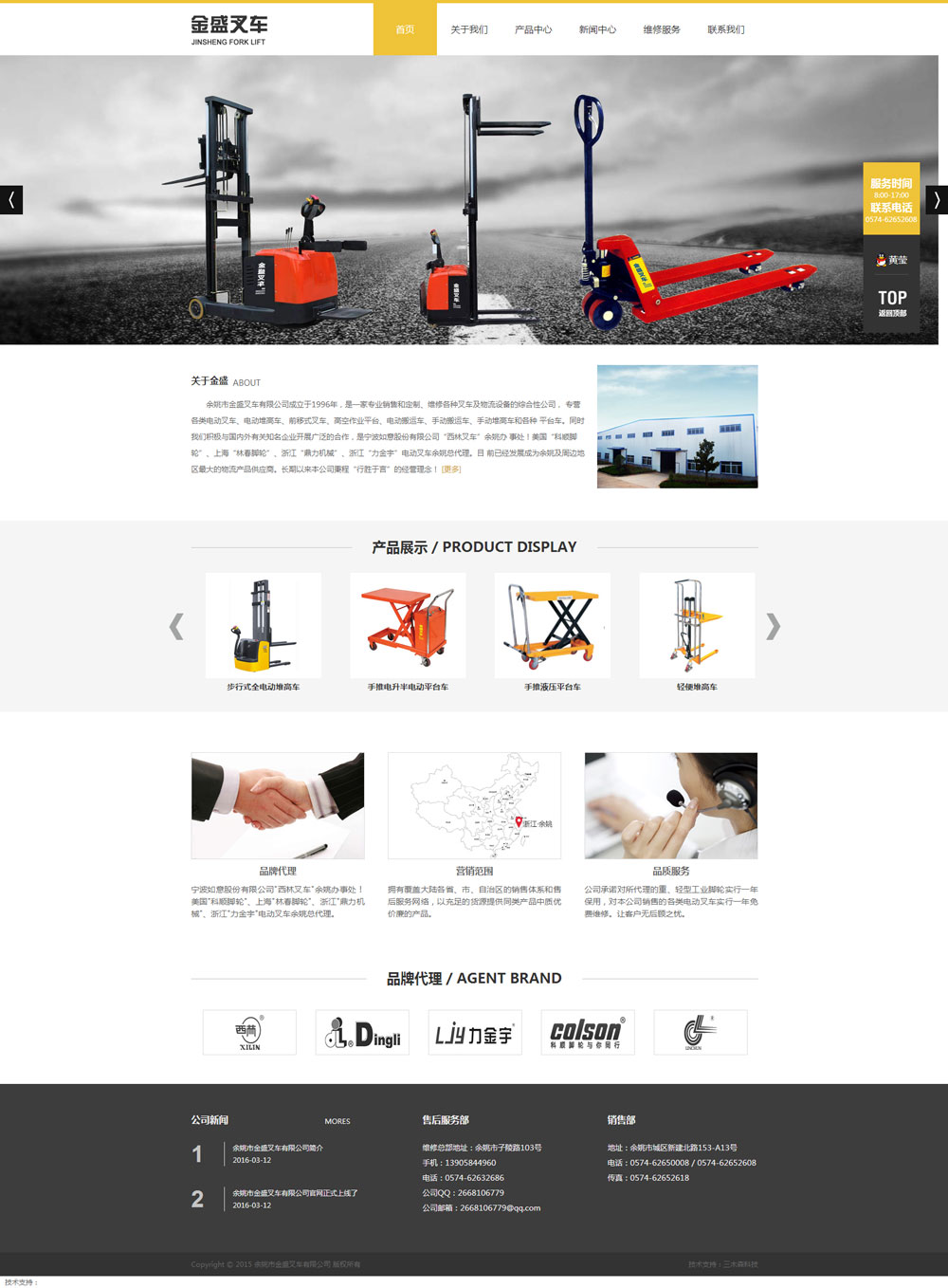 2016年,三木森与余姚市金盛叉车有限公司合作,三木森为金盛叉车打造一个全新的企业网站,从设计网站界面,到网站程序的编写,公司产品的上传,网站优化,等等全部是由三木森负责。